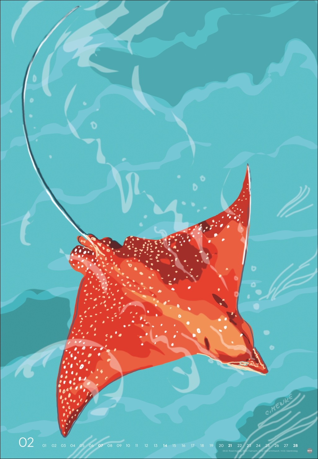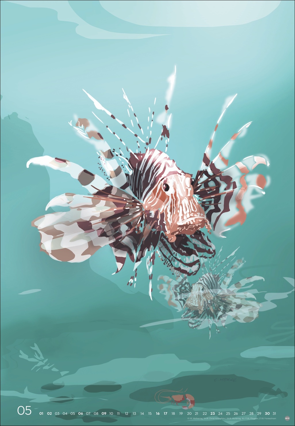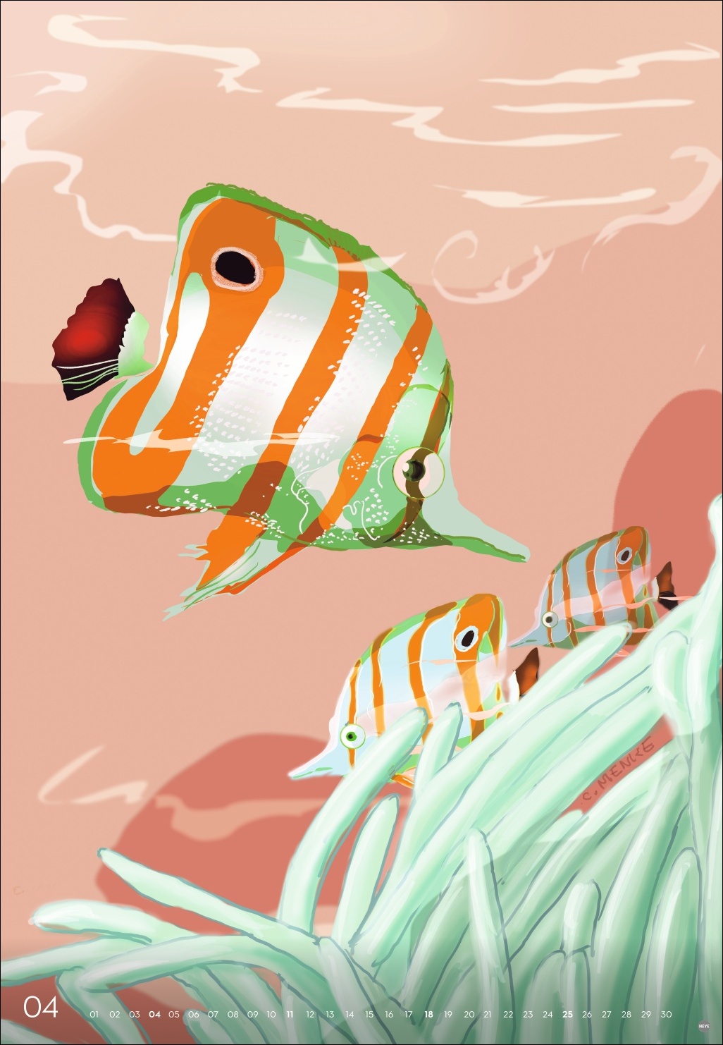 • Originelle Deko für maritimes Flair: Großer Wandkalender mit poppigem Artwork der deutschen Künstlerin Chris Menke – nicht nur ein Geschenk für Tierfreunde