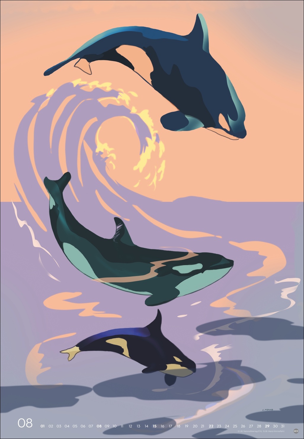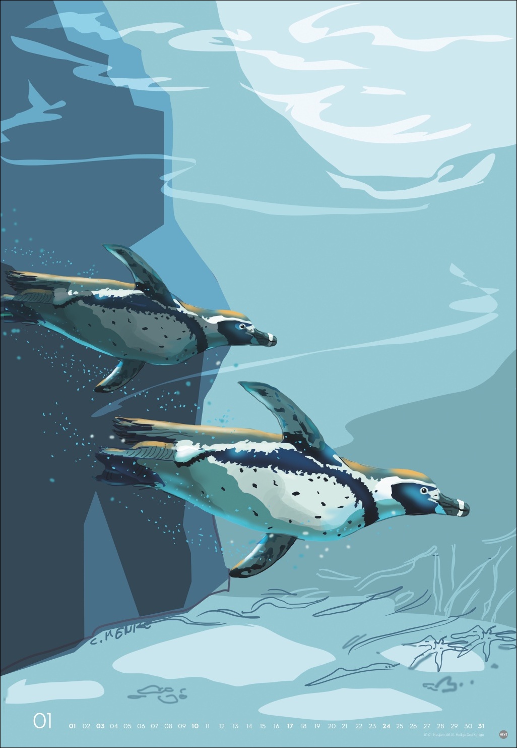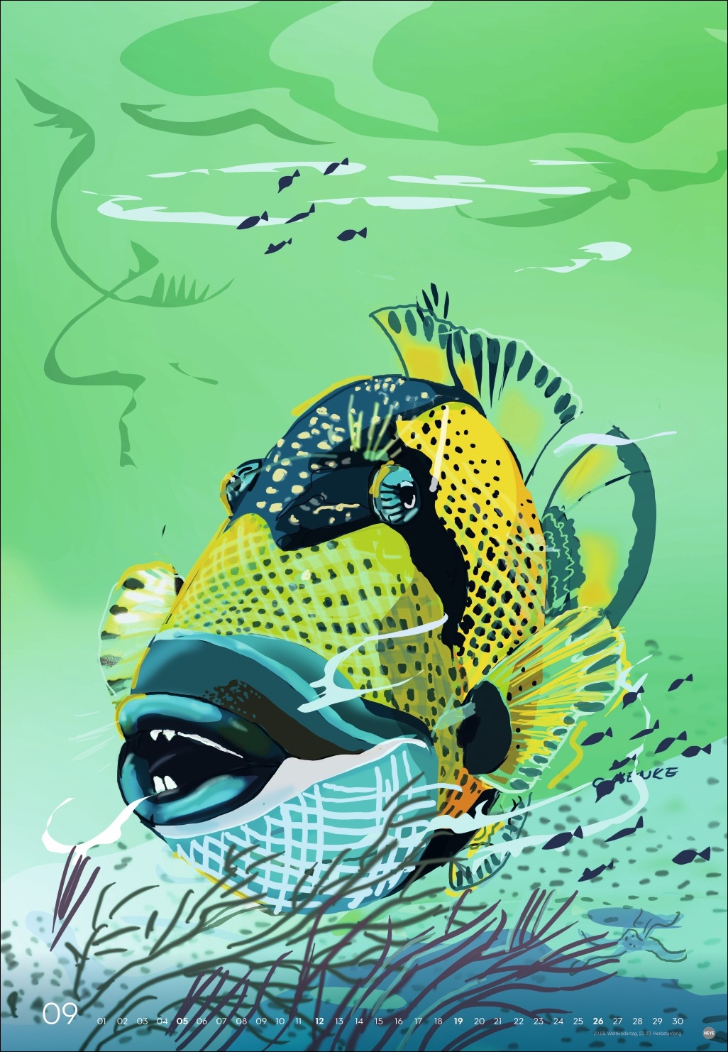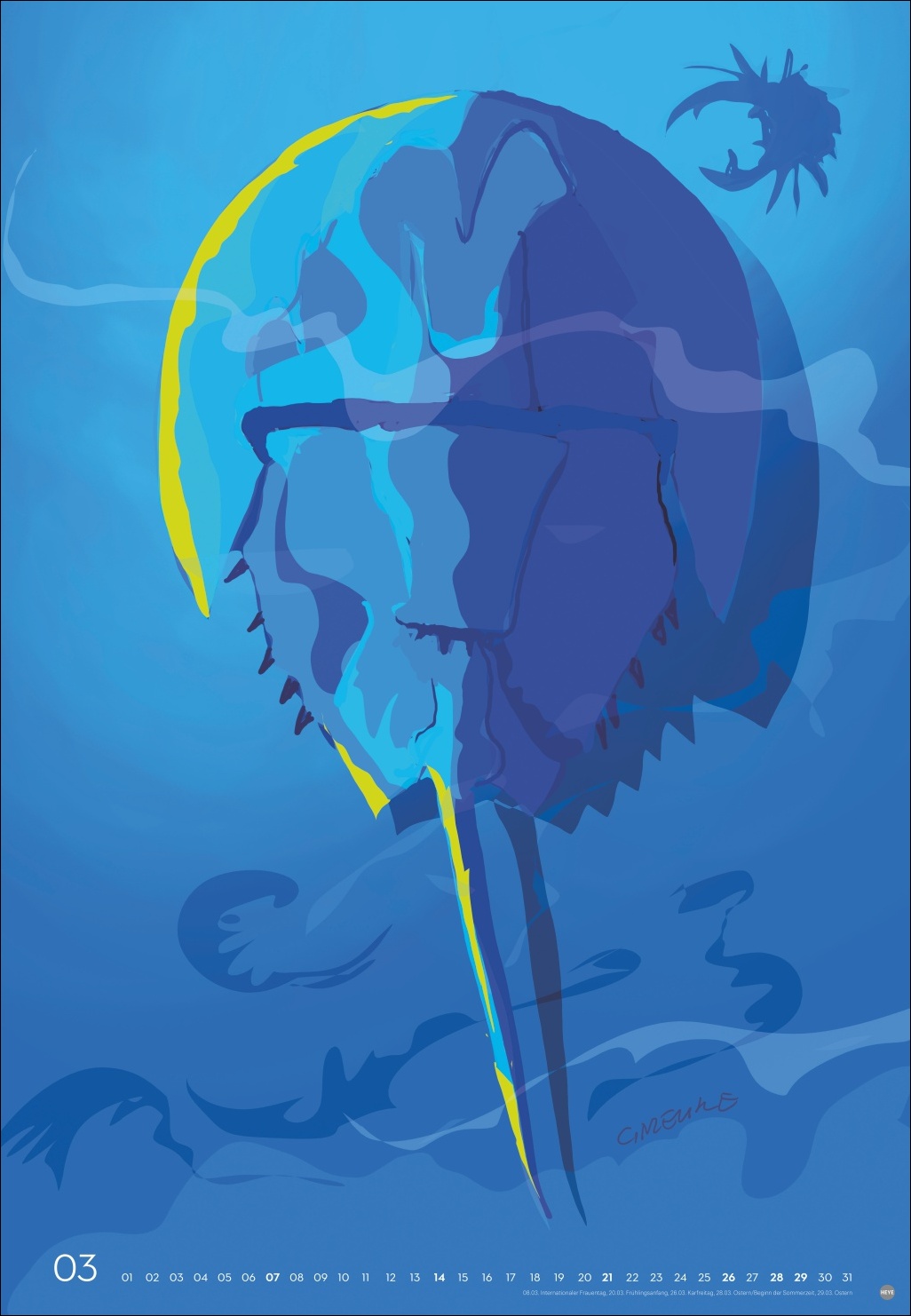• Originelle Deko für maritimes Flair: Großer Wandkalender mit poppigem Artwork der deutschen Künstlerin Chris Menke – nicht nur ein Geschenk für Tierfreunde